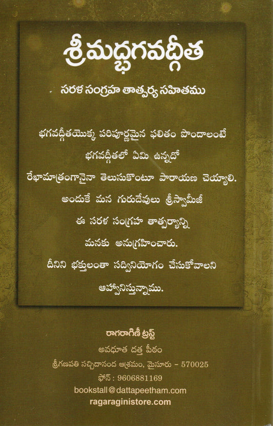 Bhagavad-Gita (Sarala Sangraha Tatparya Sahitamu)- Telugu Book